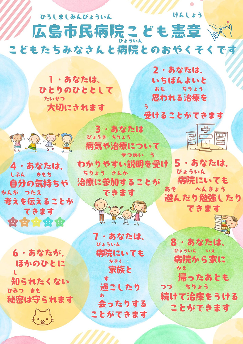 広島市立広島市民病院は、信頼され満足される医療を提供するため、次のような患者さんの権利を尊重します。