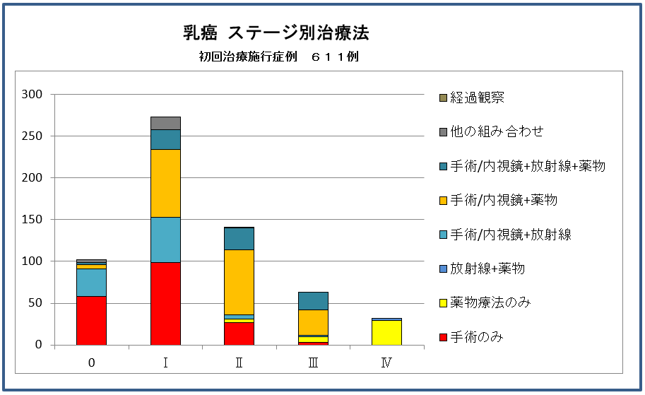 初回治療とは、治療の開始時点において計画された一連の治療を示し、症例区分の「20」「30」に該当する症例を集計。症状・治療の進行に従って後に追加された治療や他院で施行された治療については初回治療には含まれない。 | |