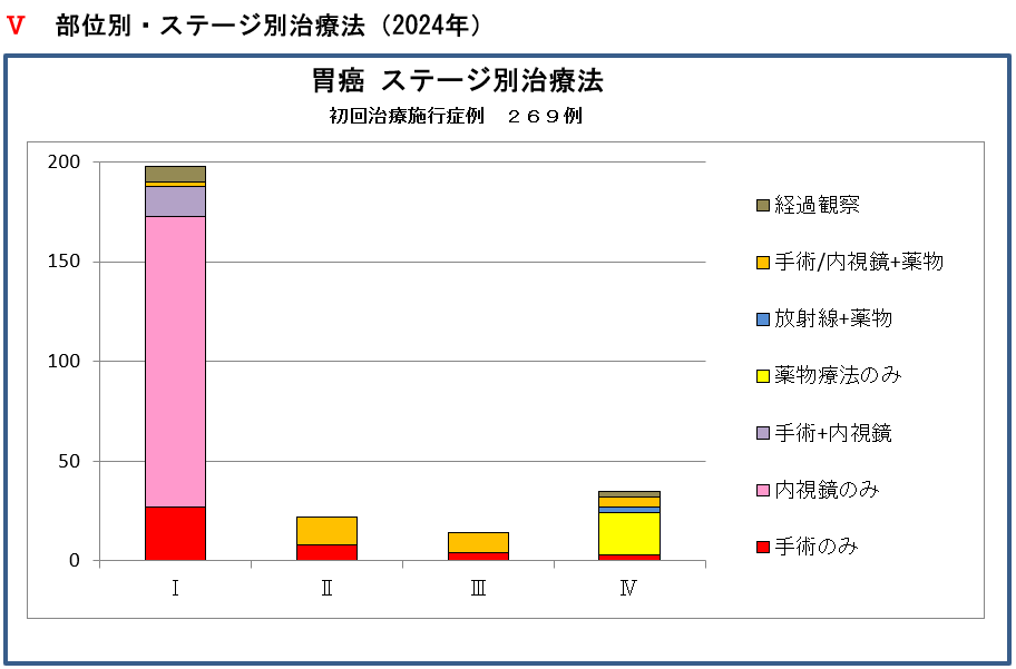 Ⅴ部位別 ステージ別 治療法件数 ①胃癌 ②大腸癌 ③肝細胞癌 ④肺非小細胞癌 ⑤乳癌 ⑥子宮頸癌 ⑦前立腺癌 |