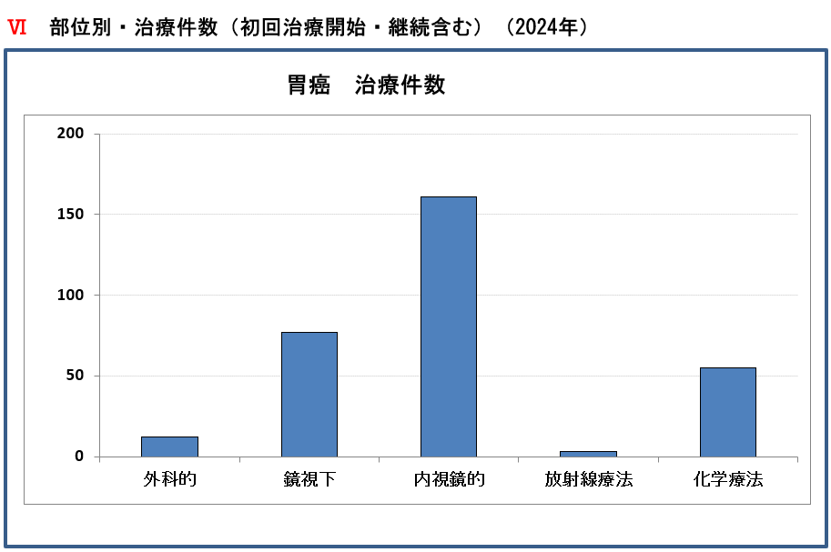 Ⅵ部位別 治療件数 ①胃癌 ②大腸癌 ③肝細胞癌 ④肺非小細胞癌 ⑤乳癌 ⑥子宮頸癌 ⑦前立腺癌 |