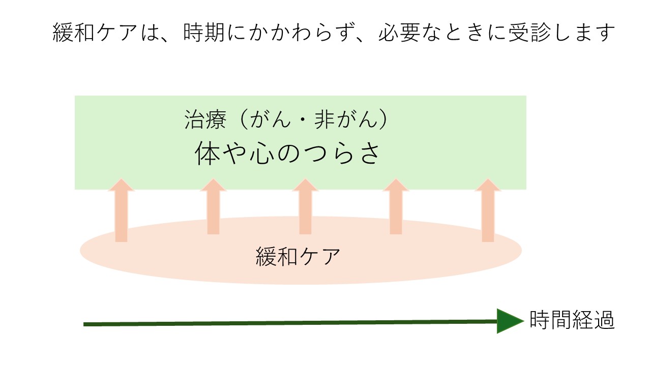 ・緩和ケアは、病気の時期に関係なく、患者さん、ご家族の希望に応じておこないます。