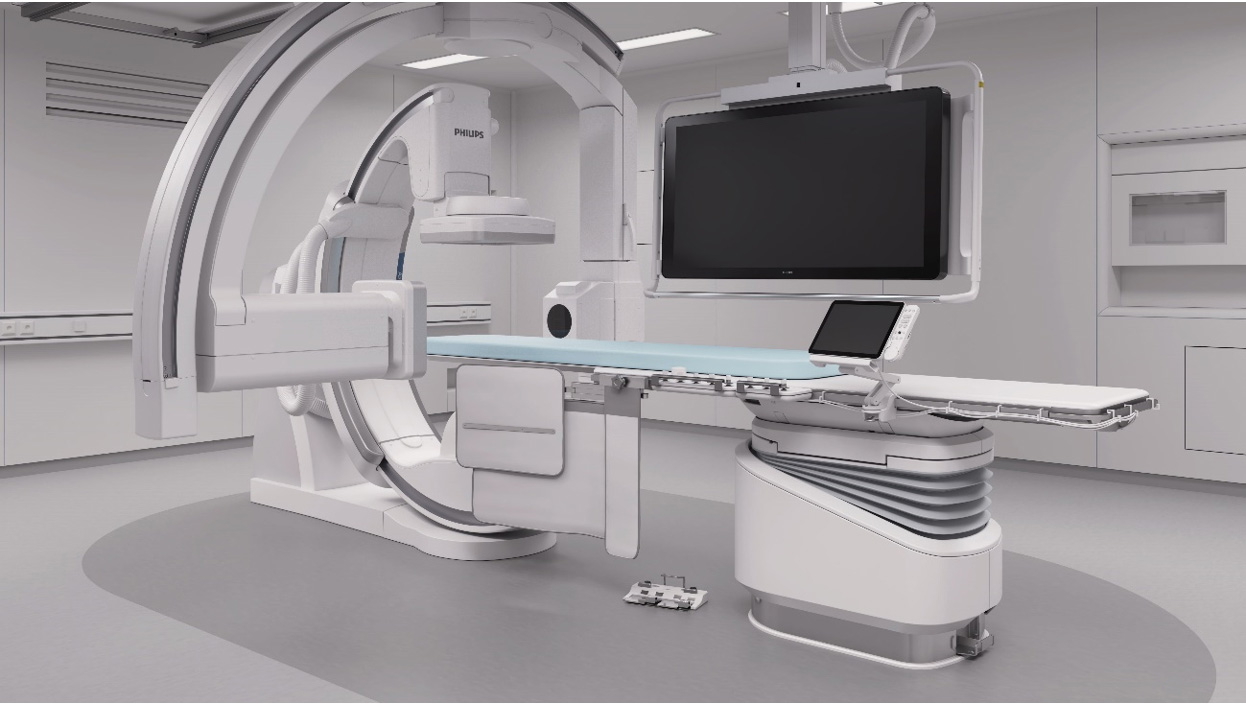従来型のX線透視撮影装置と大視野FPDを搭載し、機能的にも優れたCアームにより多方向からの観察を可能にし、さまざまな検査要求に対応しています。